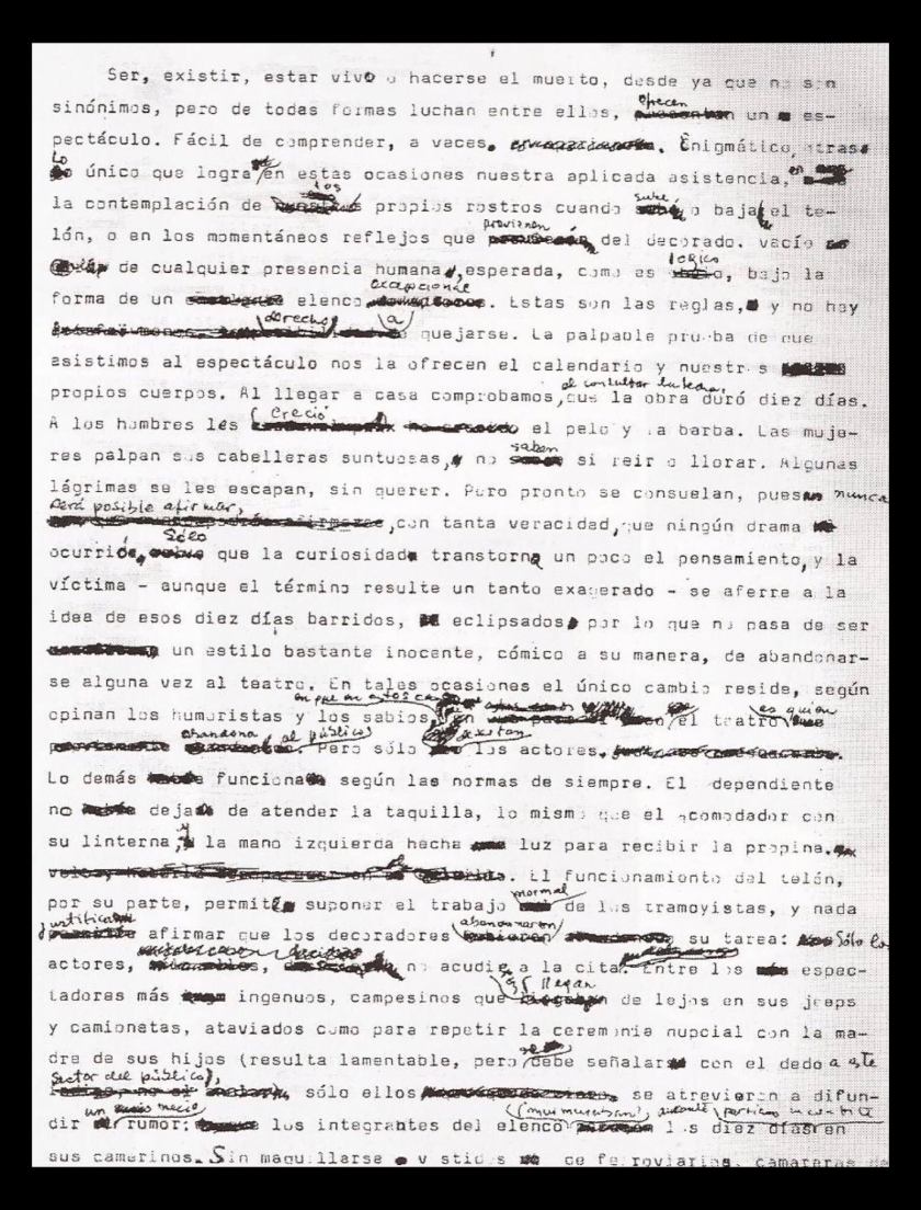 El nombre es lo literal, el símbolo lo literario. OL repliega los nombres hacia una extensión que no dramatiza una trama. Los nombres resuenan en una ausencia de temas: «Lo por nombrado. Ya ya ya cansado». Desde una visión de conjunto es lo que Luis Thonis advierte a partir del exilio de OL en Barcelona y la escritura de La causa justa: una «ruptura “casi” definitiva con el nacionalismo y “la ideología argentina”». O del más acá con Milita Molina: «lo que apenas ocurre, la obra maestra del recuerdo, lo mejor que le puede pasar a un escritor: sembrar la duda (de una nostalgia)». El mito ya no más al servicio de grandes relatos: en el uso que le da el mito de/canta, exprime, espanta. Y ya para terminar, una breve apreciación sobre TPC y cómo se relaciona con esto que vengo contando y con el cuaderno. Laura Estrin ya advertía que con OL nos encontramos siempre ante un corpus susceptible de ser «apretado entre canon-museo y canon-crítico, dos formas de la muerte literaria». En mi caso, acudir al cuaderno a través de la hipótesis del Autor de un solo texto viene de la necesidad de un asidero. Lo primero que debo adelantar es que mi noción de cuaderno no contempla el lugar de alteridad al que habitualmente se relega el soporte como estadio preparatorio de una obra en construcción, como almacén, germen del apunte o suplemento de formatos de mayor envergadura. De ahora en adelante traigo el cuaderno con relación a un cuerpo y a una forma de estar en el mundo, que inevitablemente demanda una disposición (del cuerpo: escucha, mirada, tacto) alterna para entrar en resonancia, en conexión. No trama, no tematiza, no conforma un relato. El cuaderno de/canta un decir. Estas son las coordenadas del cuaderno, una topografía donde las inscripciones no se circunscriben al orden de la significación, más bien en el cuaderno impera «el juego del sentido por el sentido mismo», en palabras de OL.